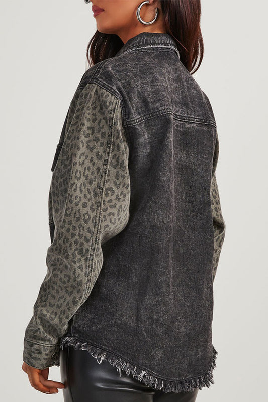 Leopard Raw Hem Shacket